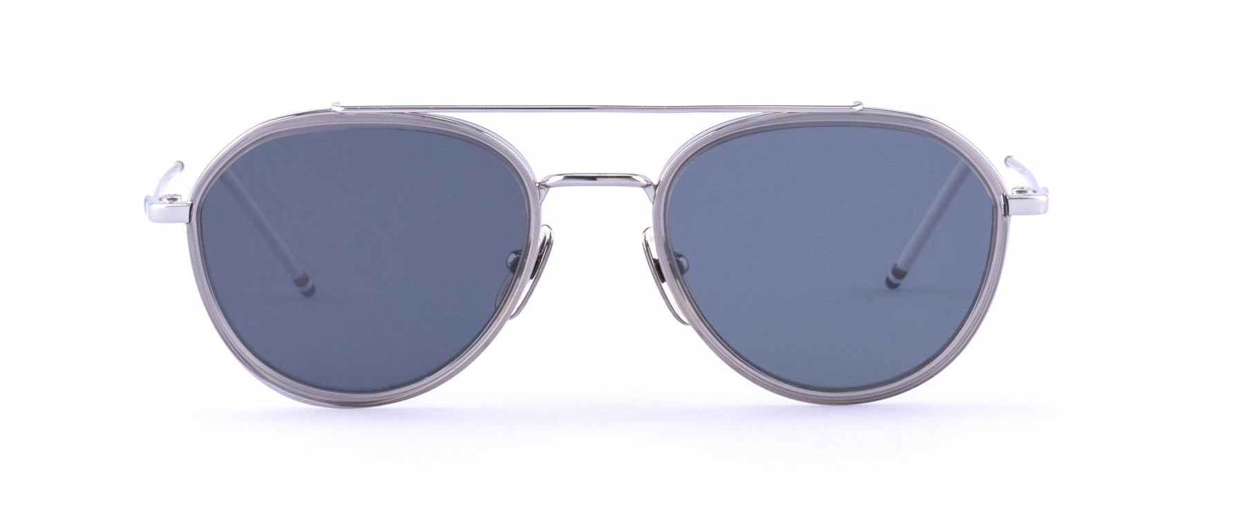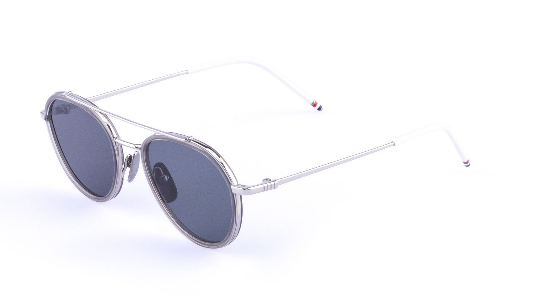 Created with metal and high-quality acetate, each frame is crafted in Japan and expertly-finished with the signature Thom Browne tricolour tips.