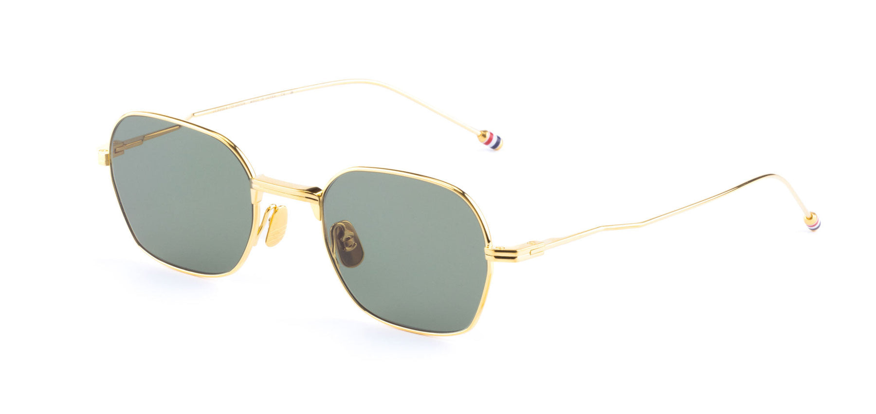 Created with metal and high-quality acetate, each frame is crafted in Japan and expertly-finished with the signature Thom Browne tricolour tips.